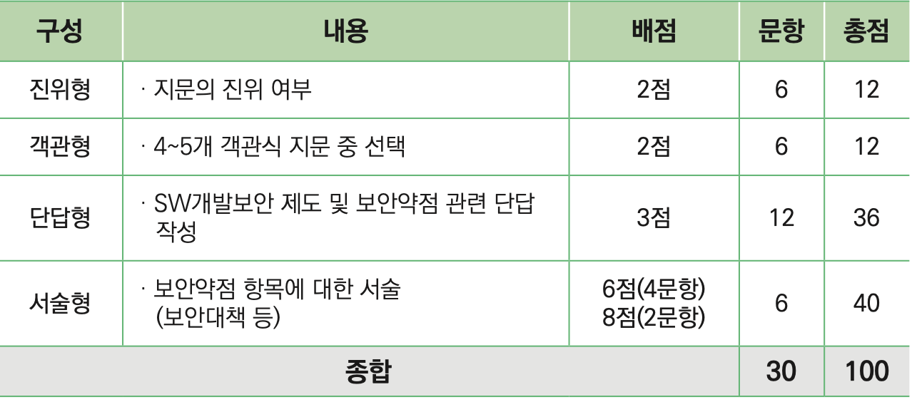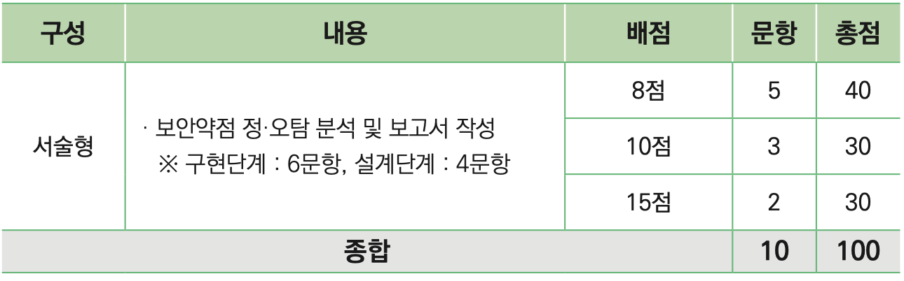 실기는 정*오탑 문제, 보안요청서 작성문제, 보안약점 식별 문제로 구성된다.