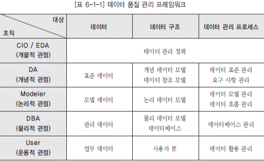 -데이터 품질 요소: 데이터 값, 데이터 구조, 데이터 관리 프로세스