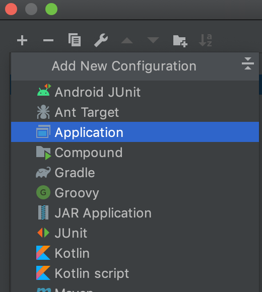 아래 창이 나타나는데 추가(+)버튼을 클릭하고, Application을 선택한다.