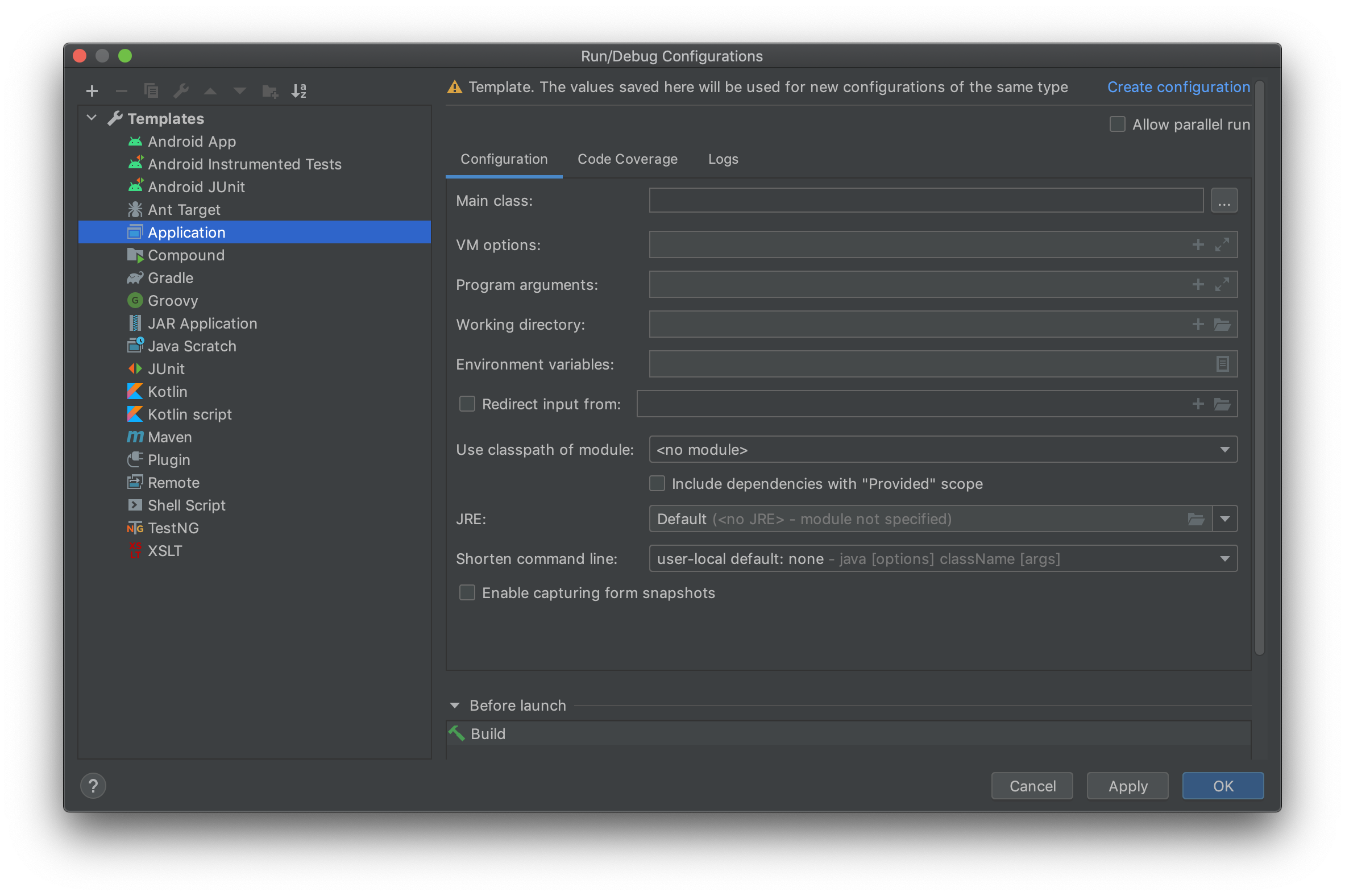IntelliJ에서 Run/Debug Configuration 을 설정해줘야 한다.